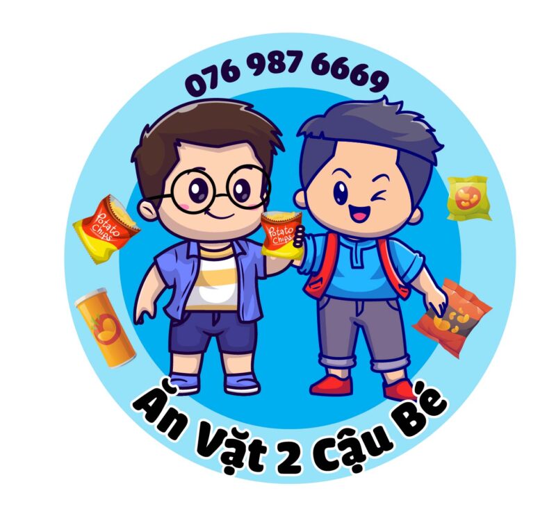 Logo chibi ăn vặt tiệm 2 CẬU BÉ