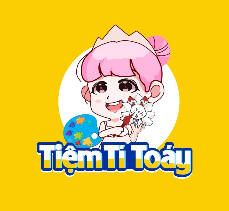 Logo Tiệm Tí Toáy là một thiết kế chibi dễ thương, tràn đầy màu sắc tuổi thơ, thể hiện đúng tinh thần vui tươi – sáng tạo – an toàn của một cửa hàng thủ công dành cho trẻ nhỏ. Hình ảnh nhân vật chibi tóc hồng, gương mặt rạng rỡ và đang cầm một sản phẩm thủ công là điểm nhấn giúp logo trở nên gần gũi và đáng yêu. Bố cục được phối hợp hài hòa giữa hình ảnh, màu sắc và kiểu chữ tạo nên một logo có tính ứng dụng cao, dễ ghi nhớ và thân thiện với phụ huynh lẫn trẻ em.