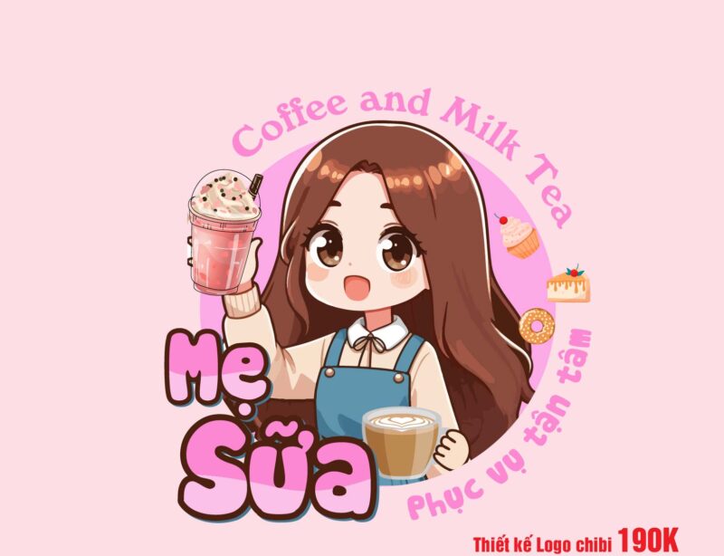 Logo chibi tiệm sữa, cà phê, bánh ngọt
