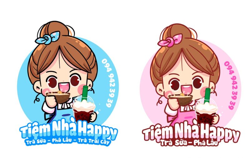 Logo chibi tiệm trà sữa HAPPY