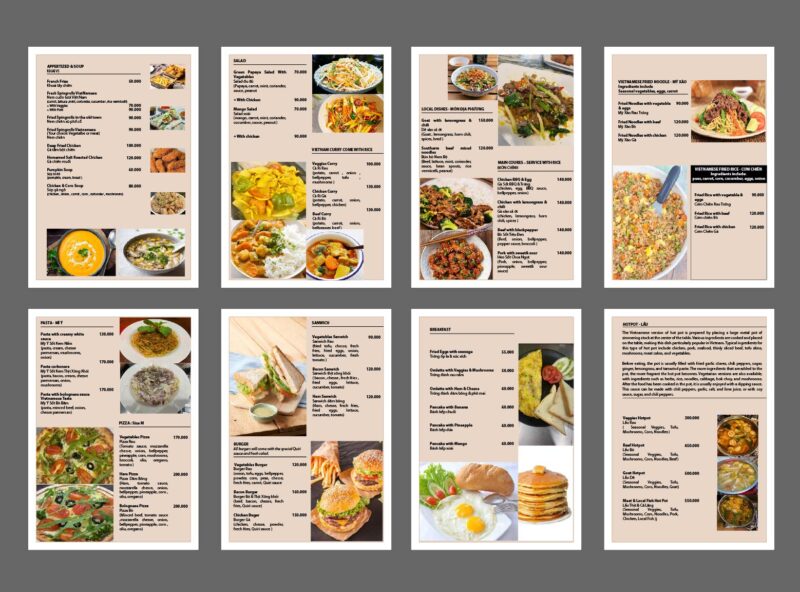 Bao gồm danh sách món, giá, hình ảnh, phong cách thiết kế mong muốn.