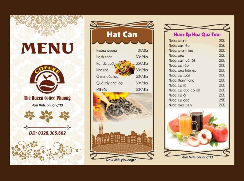 Bạn nhận đủ file in ấn độ phân giải cao, phù hợp cho tờ rơi, menu standee, menu cầm tay, menu để bàn…